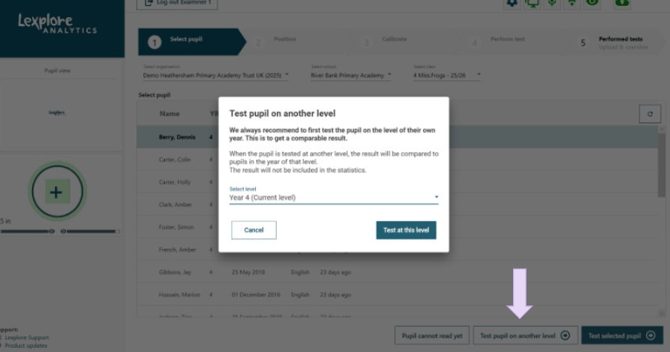 Testing a student at a different year group level