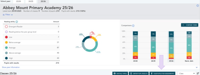 1. In Lexplore, select the school where you want to conduct re-assessments and choose Plan students for assessment.