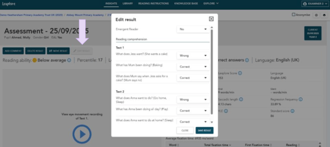- Go to the student’s recording in The Lexplore Portal (as shown in the video above).
