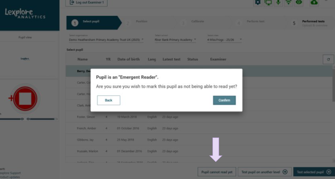 - Choose to mark the student as “Not reading yet”