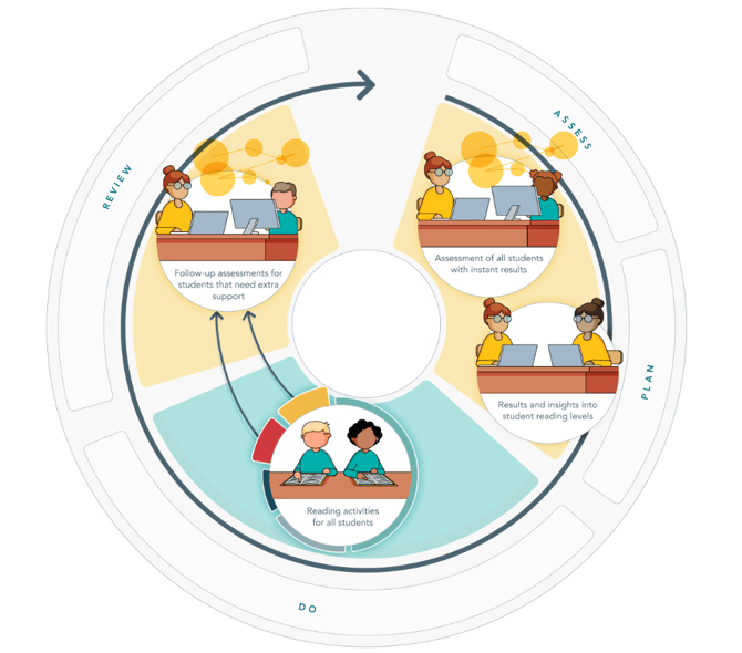 In Lexplore's terminology, assess is the first step – establishing a baseline from which to proceed.