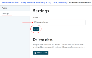 - Go to 'Settings' for that class and write the new name in the field for 'Name'.