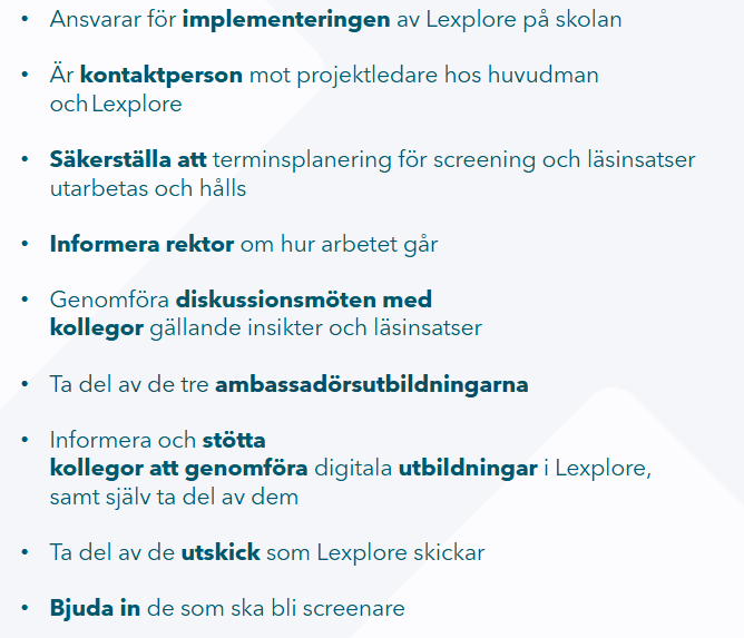 Din roll som ambassadör kommer ha en väldigt stor betydelse för hur arbetet med Lexplore kommer att fungera på din skola. Får du med dig din rektor och dina kollegor i detta arbete så har ni ökat era möjligheter att höja elevernas läsförmåga.