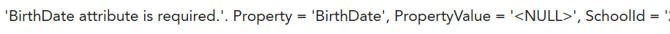 Inte alla varningar behöver nödvändigtvis ageras på, även om det är bra om datan finns. Det kan också komma en varning på att födelsedata saknas. Det är inte avgörande för att Lexplore ska kunna synka in eleven så länge årskurs och klass finns samt att eleven har ett unikt ID. Varningen ser ut enligt följande: